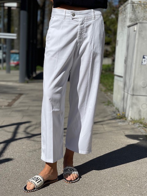Diese weiße 7/8‑Hose ist ein unkompliziertes Essential für sommerliche und lässige Casual‑Outfits.
