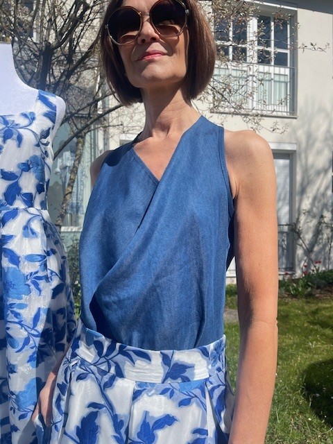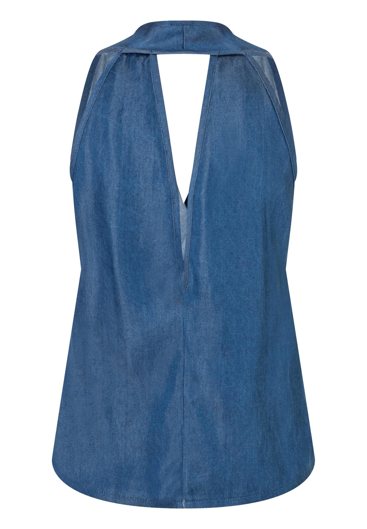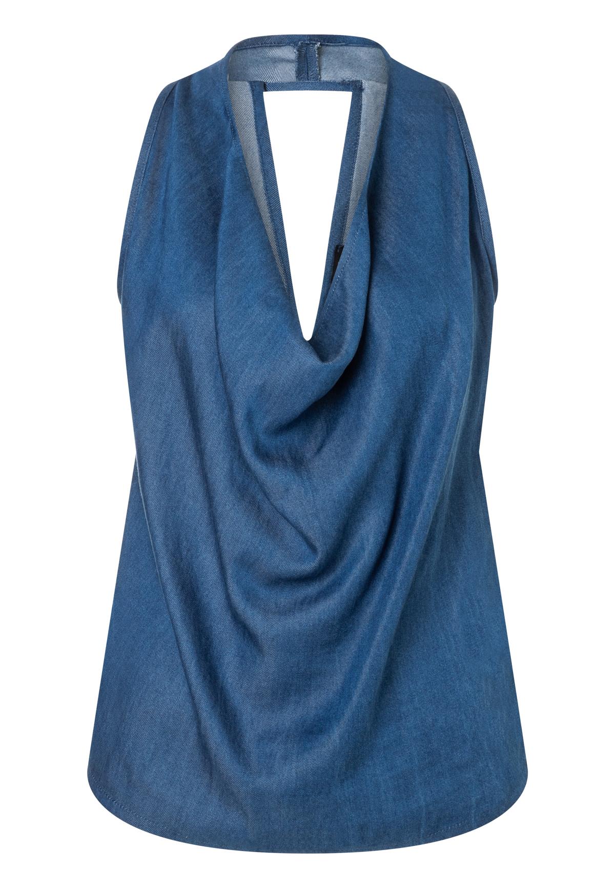 Dieses sommerliche Top in Denim‑Optik ist ein feminines Highlight für warme Tage.