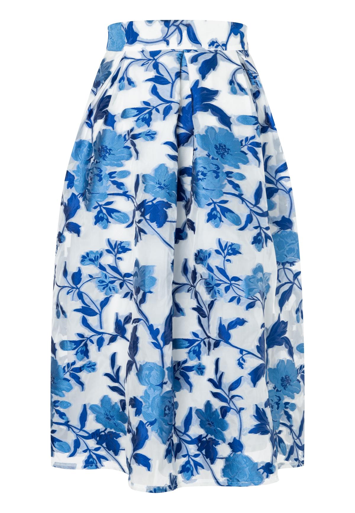 Dieser Sommerrock in Midilänge in klassischem Blau‑Weiß verbindet femininen Retro‑Charme mit moderner Eleganz – perfekt für besondere Anlässe, Sommerfeste und Urlaubsmomente.
