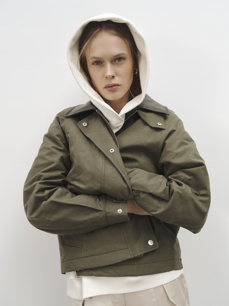 Casual Jacke in olive. - Kragen in Lederoptik - CPH Studios Logo am Rücken - hochwertiger... mehr
