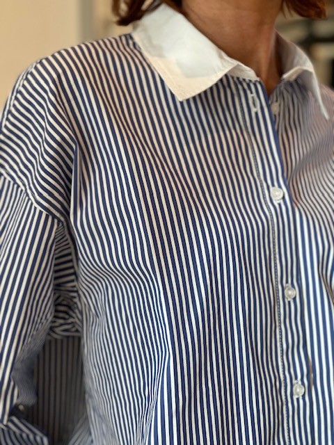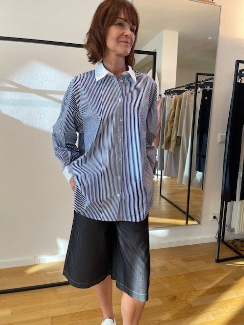 Diese Herrlicher Hemdbluse kombiniert den lässigen Look eines klassischen Herrenhemds mit einer modernen, oversize geschnittenen Silhouette. Die blau‑weiß gestreifte Optik wirkt frisch und zeitlos, während abgesetzter Kragen und Manschetten dem Design eine hochwertige, markante Note verleihen.