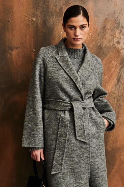 Wollmantel ash mit Bindegürtel