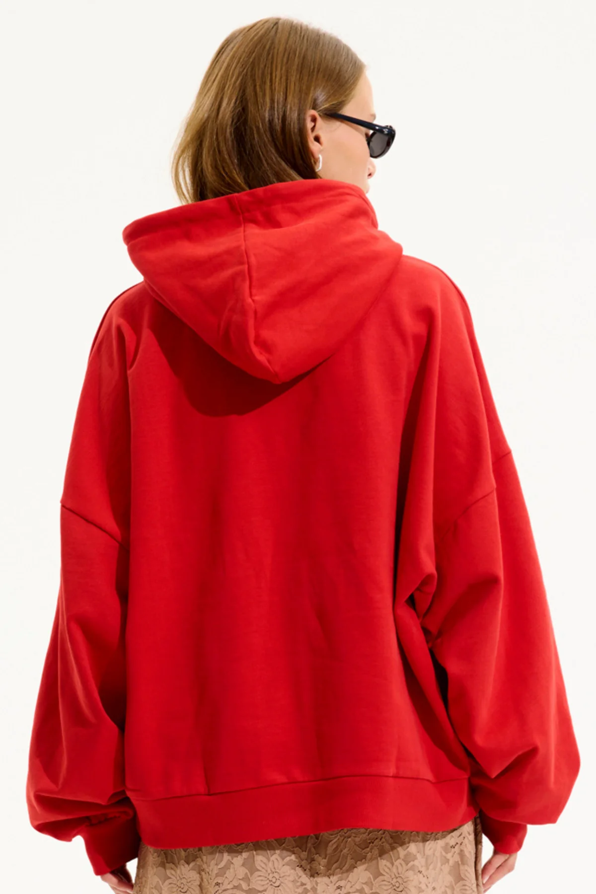 Dieser Oversize‑Sweat‑Hoodie in kräftigem Rot ist das perfekte Kuschelteil für Freizeit, Streetstyle und entspannte Alltagslooks.