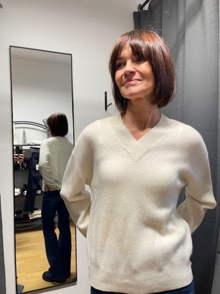 Produktinformationen "Kaschmir Pullover beige V-Ausschnitt"