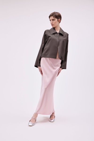 Am Kragen lässt sich die Jacke mit einem Knopf schließen – zusätzlich sorgt ein fixierbarer Riegel mit kleinem Knopf dafür, dass der Kragen auch hochgestellt getragen werden kann. Ein stilvolles Detail, das den Look abrundet.