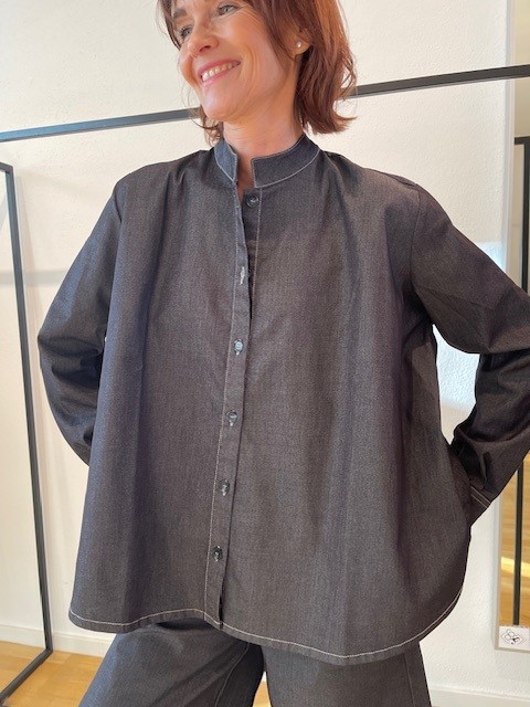 Diese lässige Oversize‑Denimbluse kombiniert modernen Minimalismus mit maximalem Komfort.