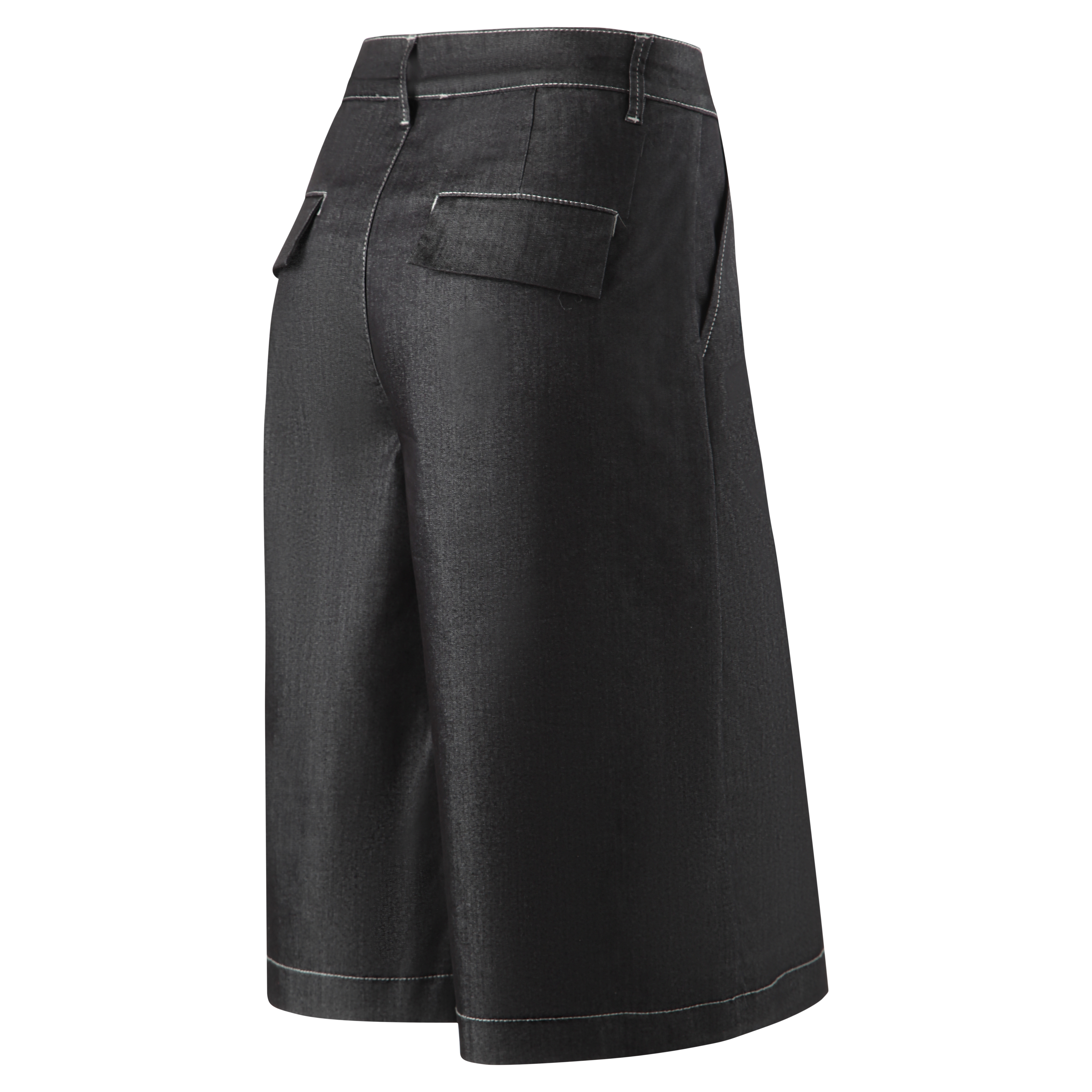 Der klassische Bund mit Gürtelschlaufen, Knopf und Reißverschluss, seitliche Eingriffstaschen sowie Paspeltaschen am Gesäß verleihen der Bermuda einen cleanen, hochwertigen Denim‑Charakter.