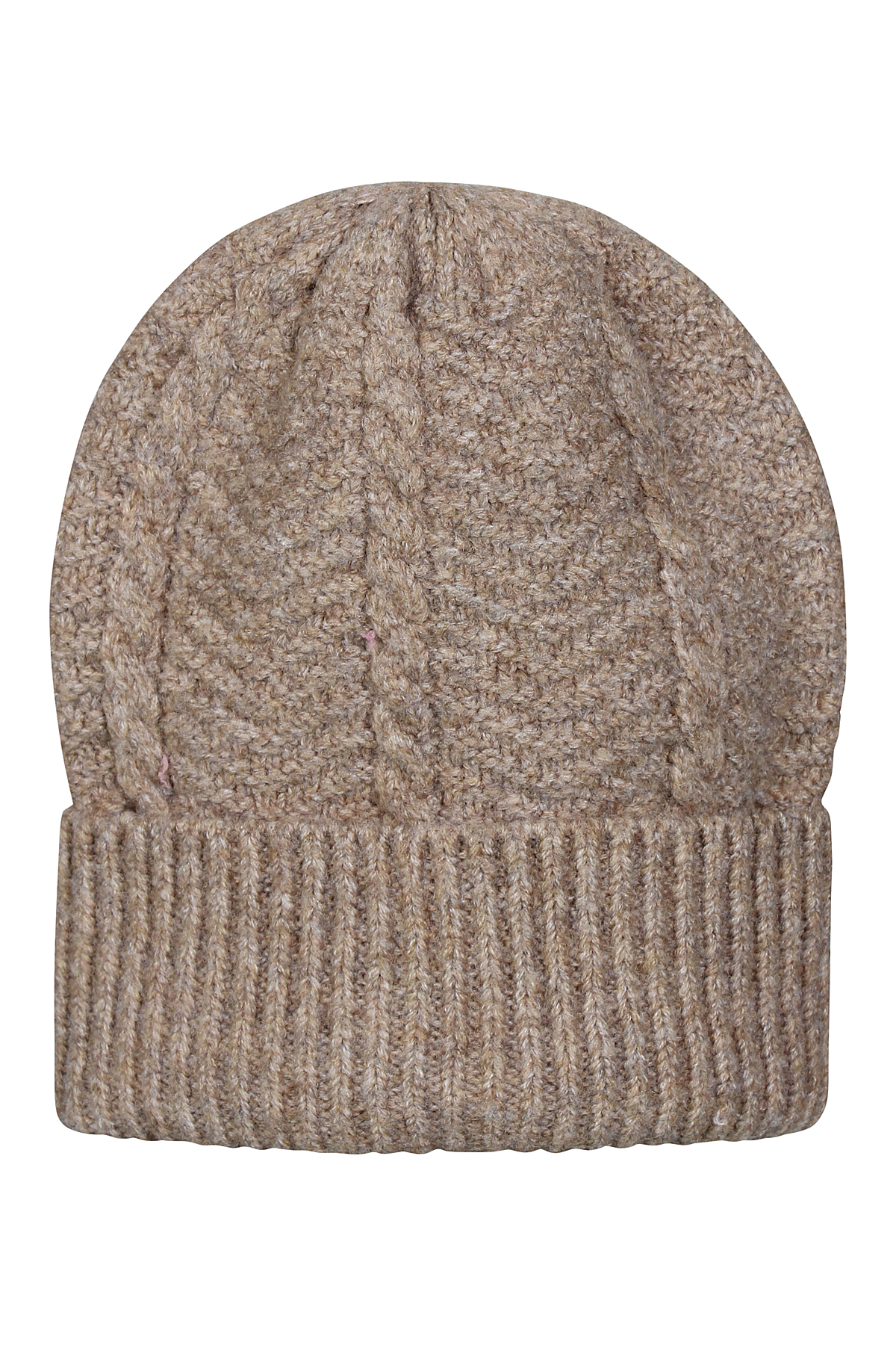 Die weiche Strickmütze Luna in beige melange passt sich jeder Kopfform an. -... mehr
