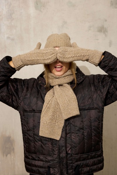 Die weichen Strickfäustlinge in beige melange sind mit einer Umschlagkrempe versehen und können... mehr