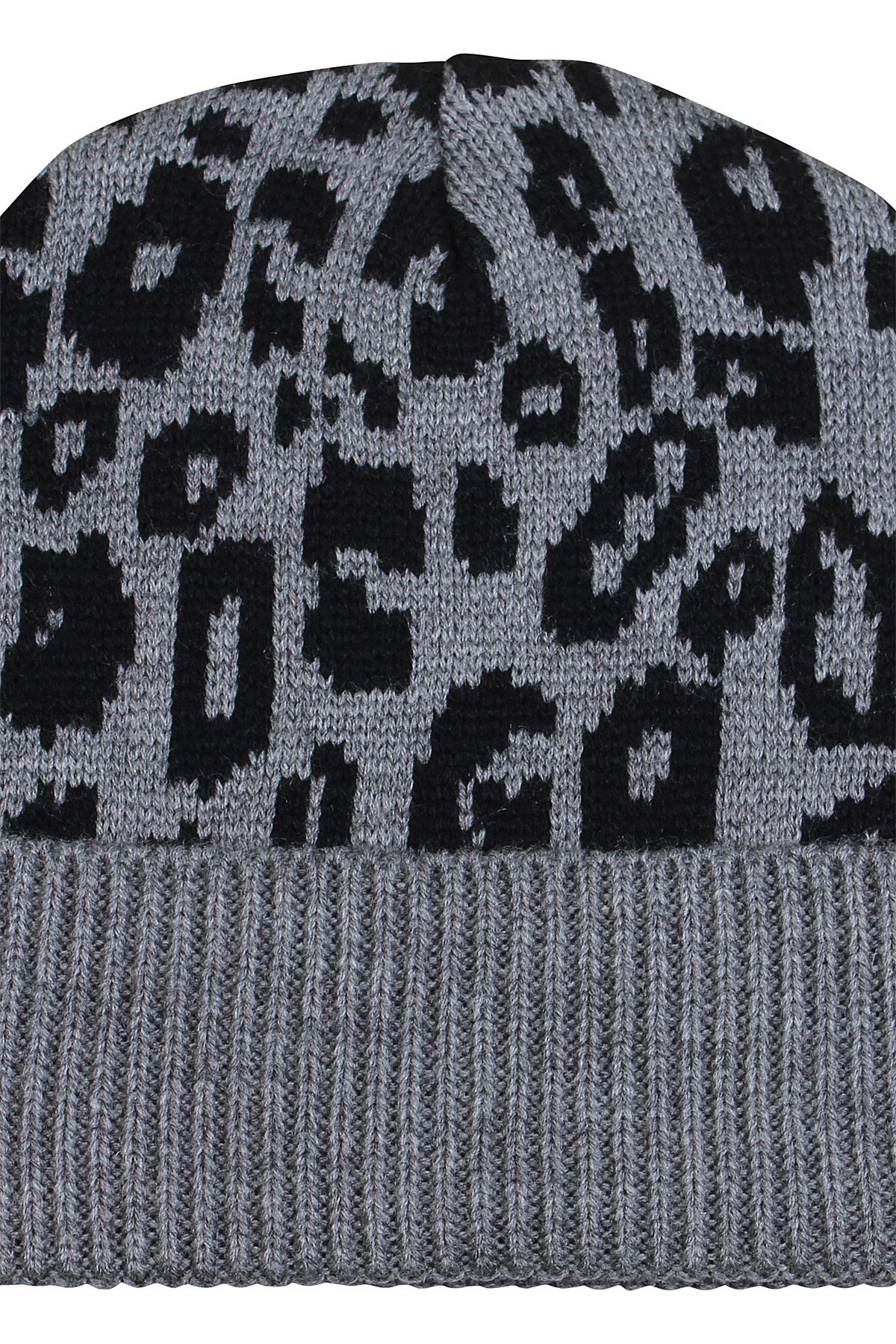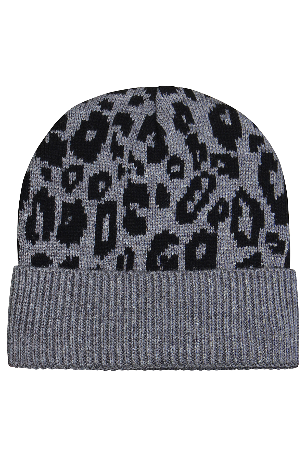 Die leichte Strickmütze Aya im Leo Design passt sich jeder Kopfform an.