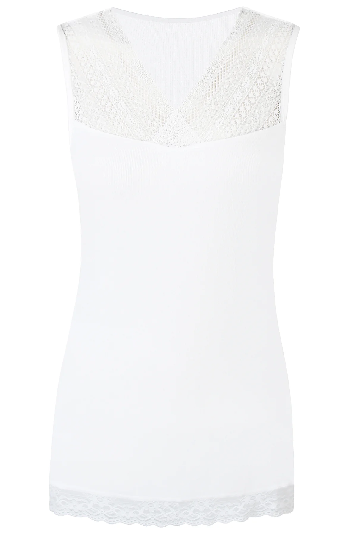 Elastisches Basic Ripptop mit eleganter Spitzenverzierung.