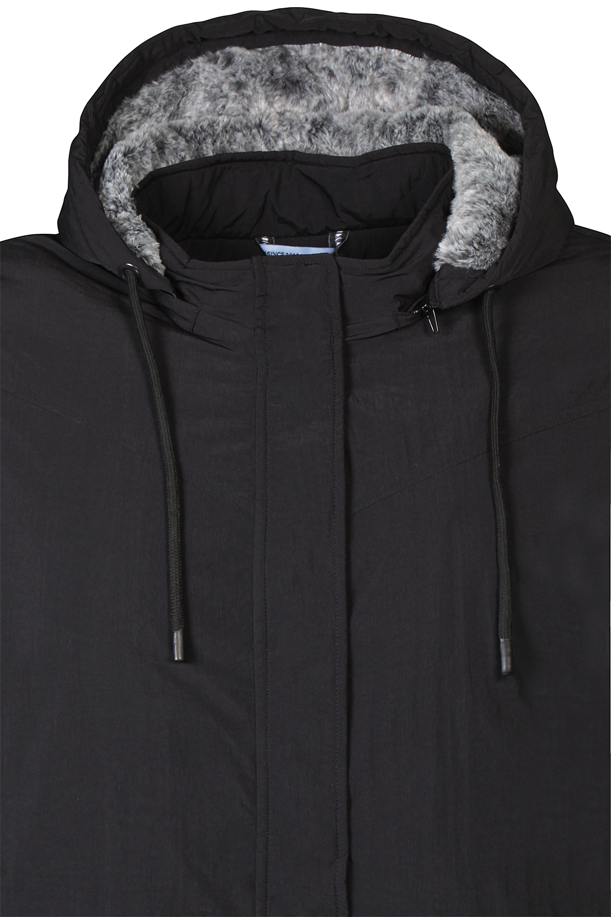 - Kapuze mit Tunnelzug und grauem Teddyfutter