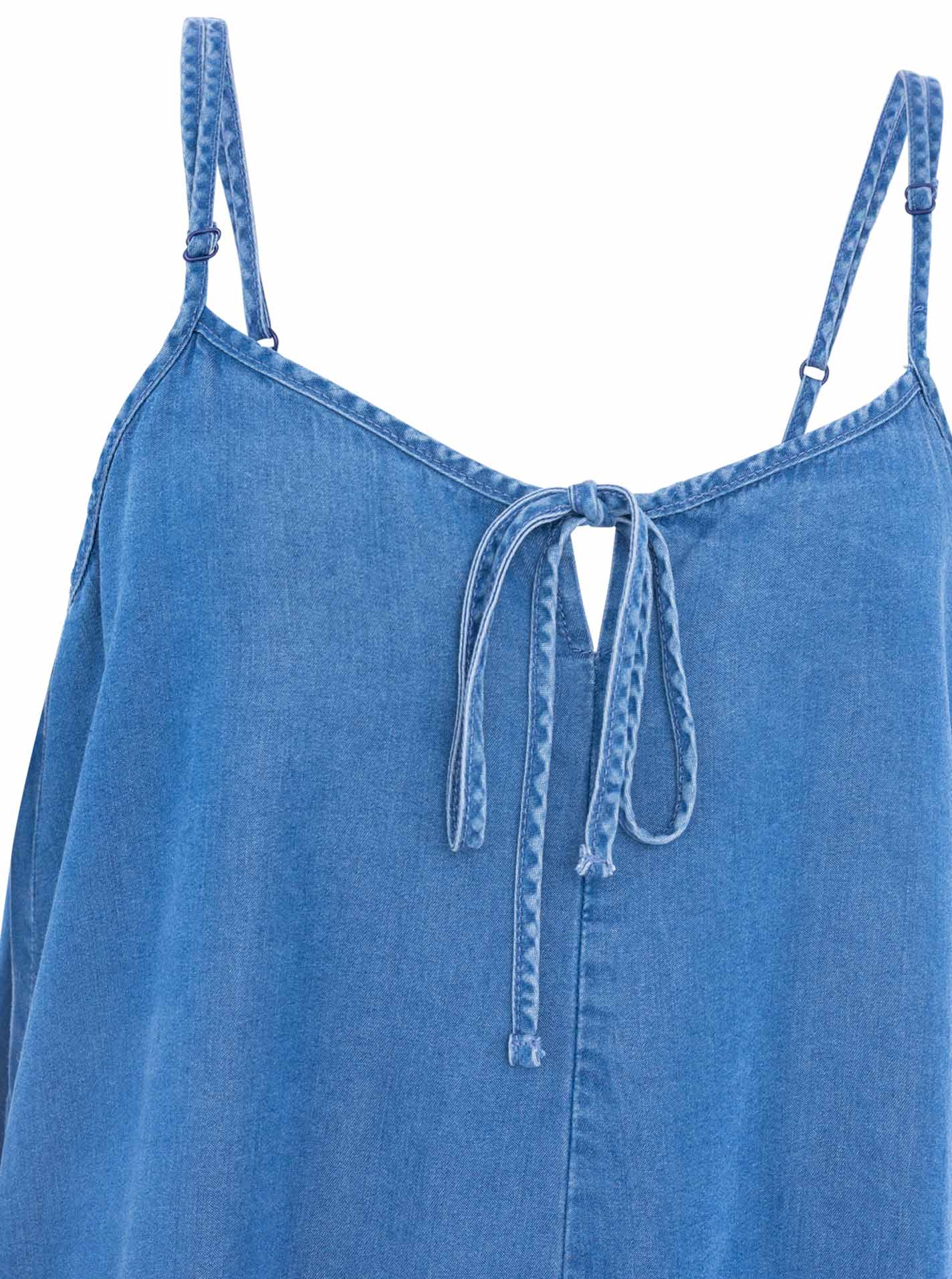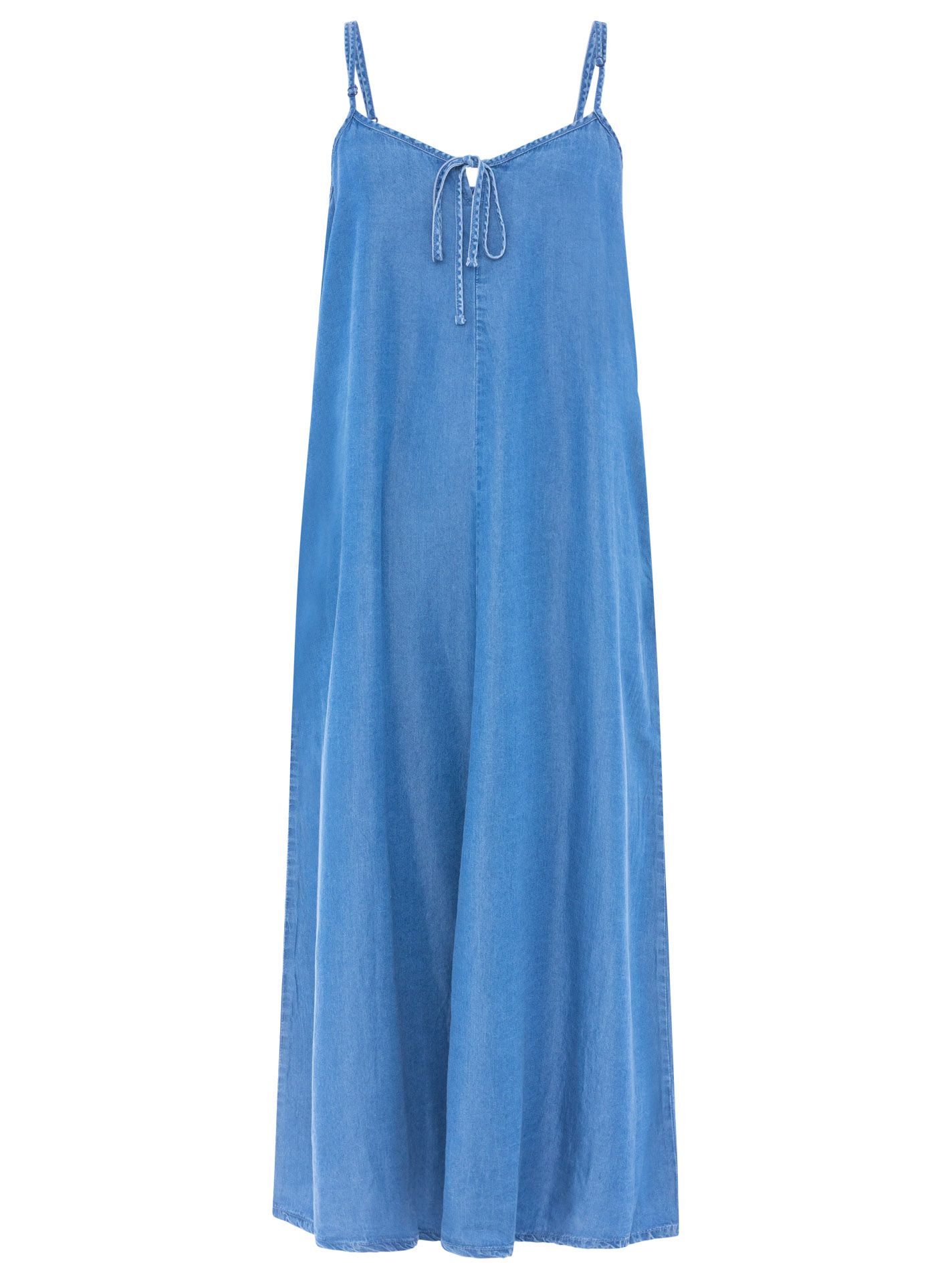 Das Zwillingsherz Trägerkleid in Denim‑Optik ist der perfekte Begleiter für warme Sommertage.